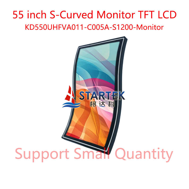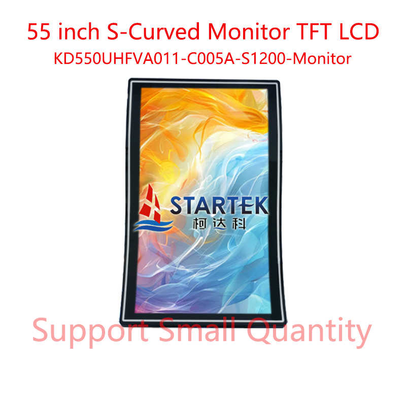 This 55-inch S-curved capacitive touch TFT-LCD monitor has stock, long-supply, NO MOQ. It has 4K resolution, 1.07B colors, 178°viewing angle, 50000-hour LED backlight. Supporting 10-point touch, multi-systems, it has HDMI/DP interfaces, AC 100-240V power, operating at 0-40℃.